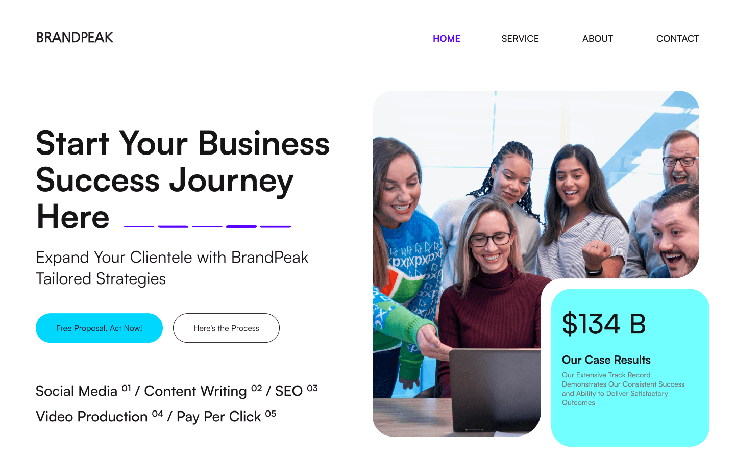 BrandPeak is a modern and engaging website designed for a results-driven marketing agency. The goal was to craft a visually compelling and highly functional platform that effectively communicates the agency’s expertise in digital marketing, branding, and growth strategies.