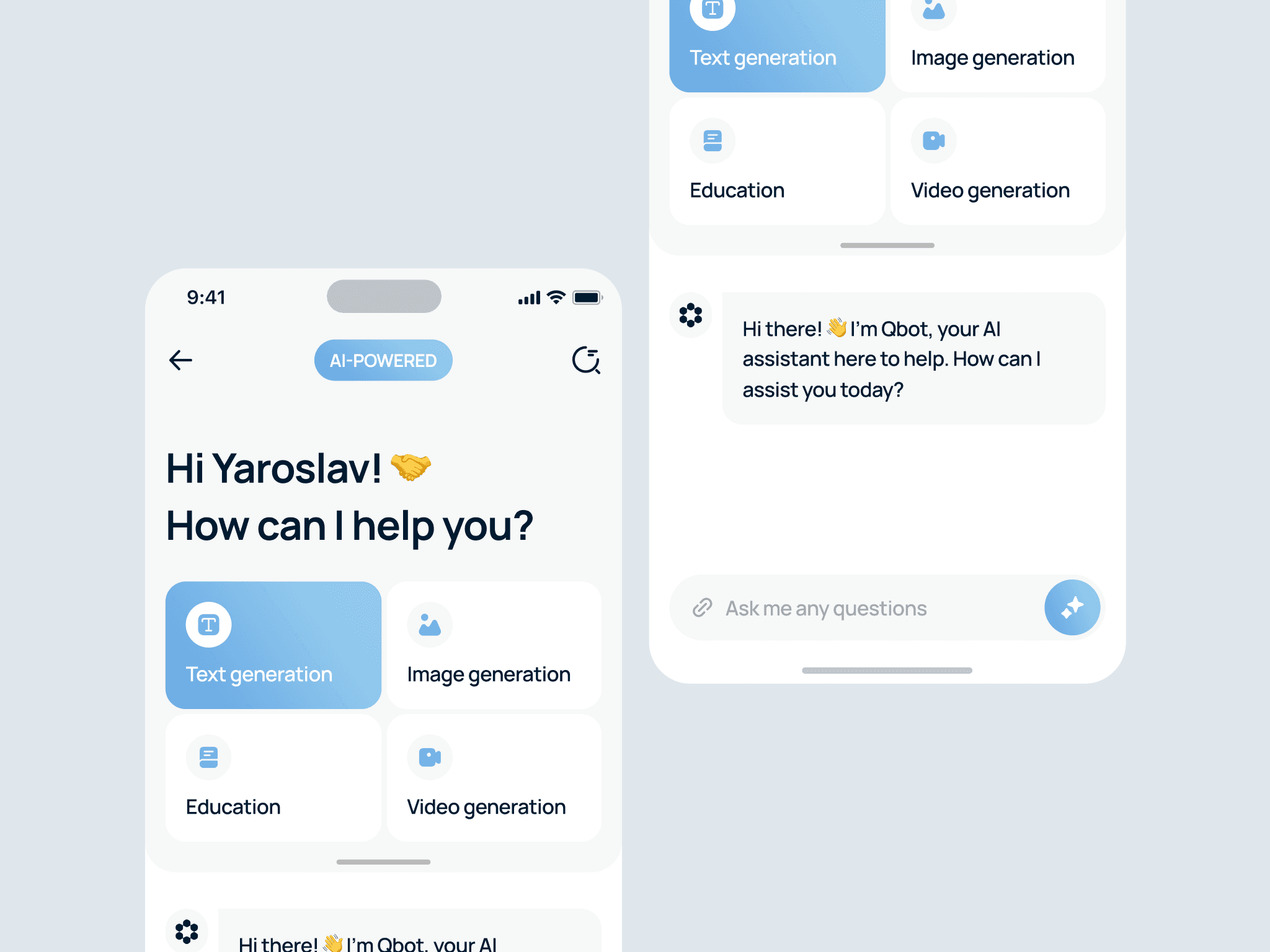 The Qbot project involved creating a stunning design for a cutting-edge AI mobile application. This innovative app features a sleek, user-friendly interface that harnesses the power of artificial intelligence to deliver personalized experiences. From intuitive navigation to visually captivating graphics, every element is crafted to enhance user engagement. Qbot's built-in AI provides real-time insights, smart recommendations, and seamless interactions, making it an indispensable tool for users. Our design team focused on combining aesthetic appeal with advanced functionality, ensuring that Qbot not only looks great but also performs exceptionally. This project highlights our dedication to creating visually striking and highly effective digital solutions.